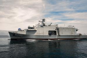 Première levée des couleurs du Jacques Stosskopf, deuxième bâtiment ravitailleur de forces du programme FLOTLOG