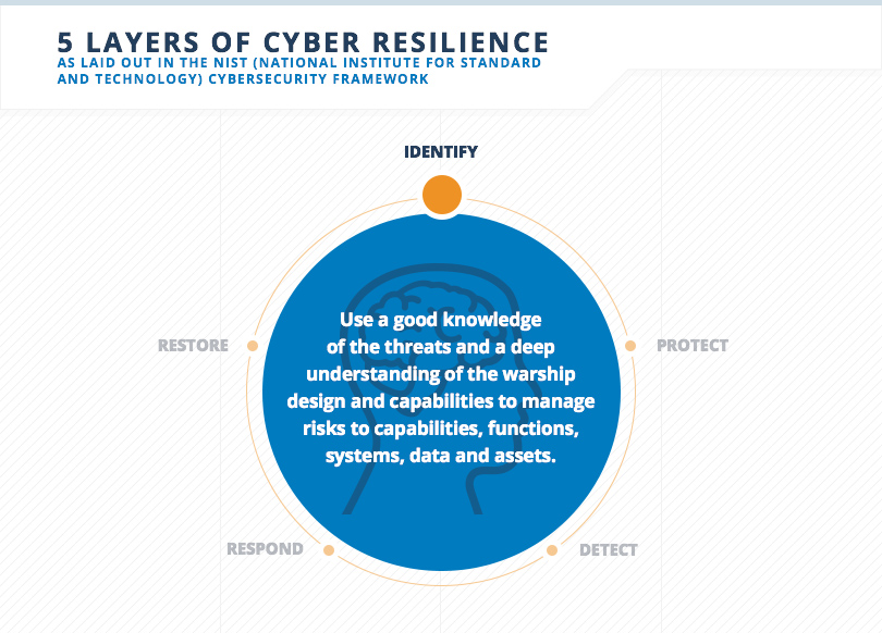Cyberattacks have become the fourth war space, along with land, sea and air attacks, where the ship and crew have to combat. In its role as naval system designer and integrator, Naval Group takes a “keel up” approach to naval cybersecurity, designing and building warships that integrate layers of cyber defenses and counter measures to create true cyber resilience.