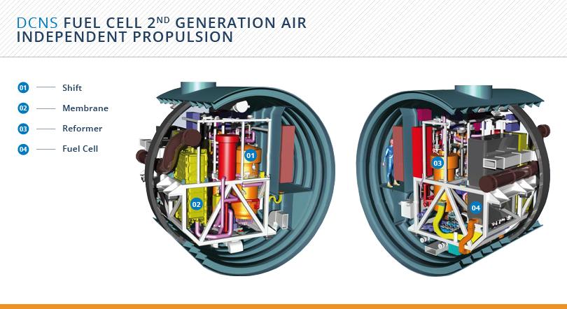 Naval Group has developed an AIP system powered by 2nd generation fuel cells call FC2G.