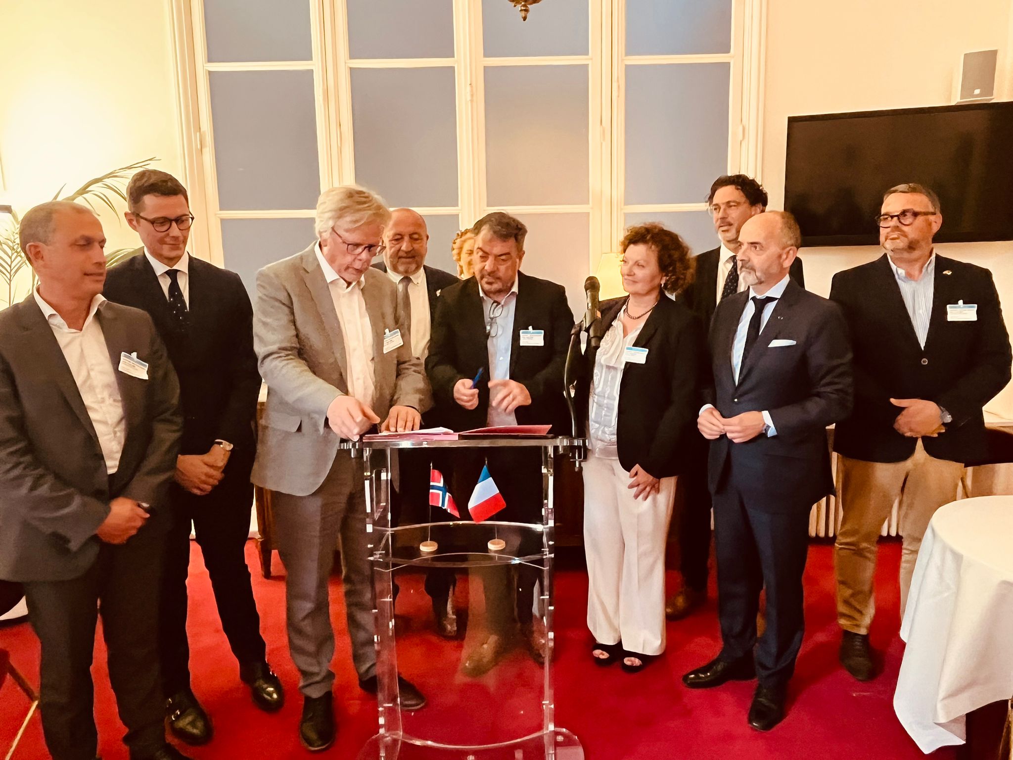The agreement was signed on June 19th at the Hotel de Lassay of the French National Assembly, in the presence pf Pascal Lecamp, Member of Parliament and President of the France-Norway friendship Comity, Vincent Caure, Member of Parliament, H.E. Niels ENGELSCHIØN, Norwegian Ambassador in France, Claudine Smith, CEO BNP Paribas Norway & President of the Norwegian French Chamber of Commerce, and Thibault Farineau, Director of Strategy and Innovation Management for Naval Group.