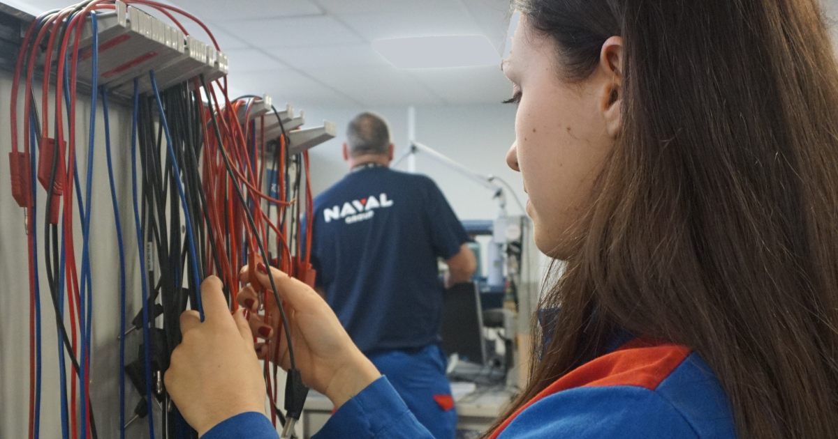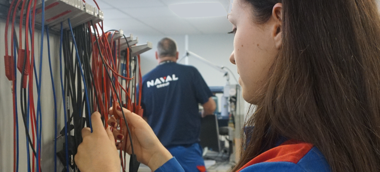 J’ai de la famille dans la marine, donc j’ai toujours eu une affinité avec le naval et la défense. J’ai regardé les offres en alternance sur le site web de Naval Group, j’ai postulé et après plusieurs entretiens j’ai été prise. Depuis mon arrivée dans l’entreprise en septembre, je fais beaucoup de formations pour acquérir des connaissances dans le domaine électrique et celui du nucléaire. J’observe les gens du métier et je vais souvent à bord pour voir le déroulement des opérations de maintenance autour du réacteur.