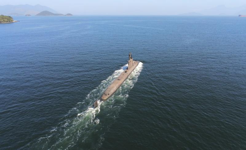 Le sous-marin Riachuelo lors de sa mise à l'eau